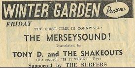 In March 1964 they came fourth in Cornwall’s ‘Rock & Rhythm Championships’ at Truro City Hall out of twenty groups.